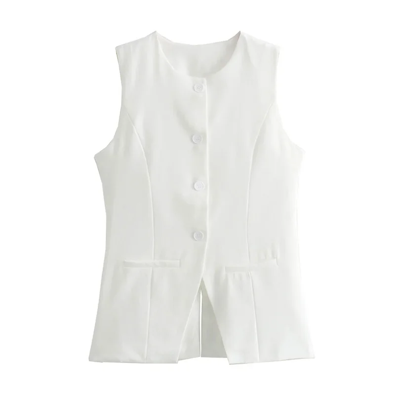 Chic Tailored Sleeveless Vest – Classic Button-Down Professional Top