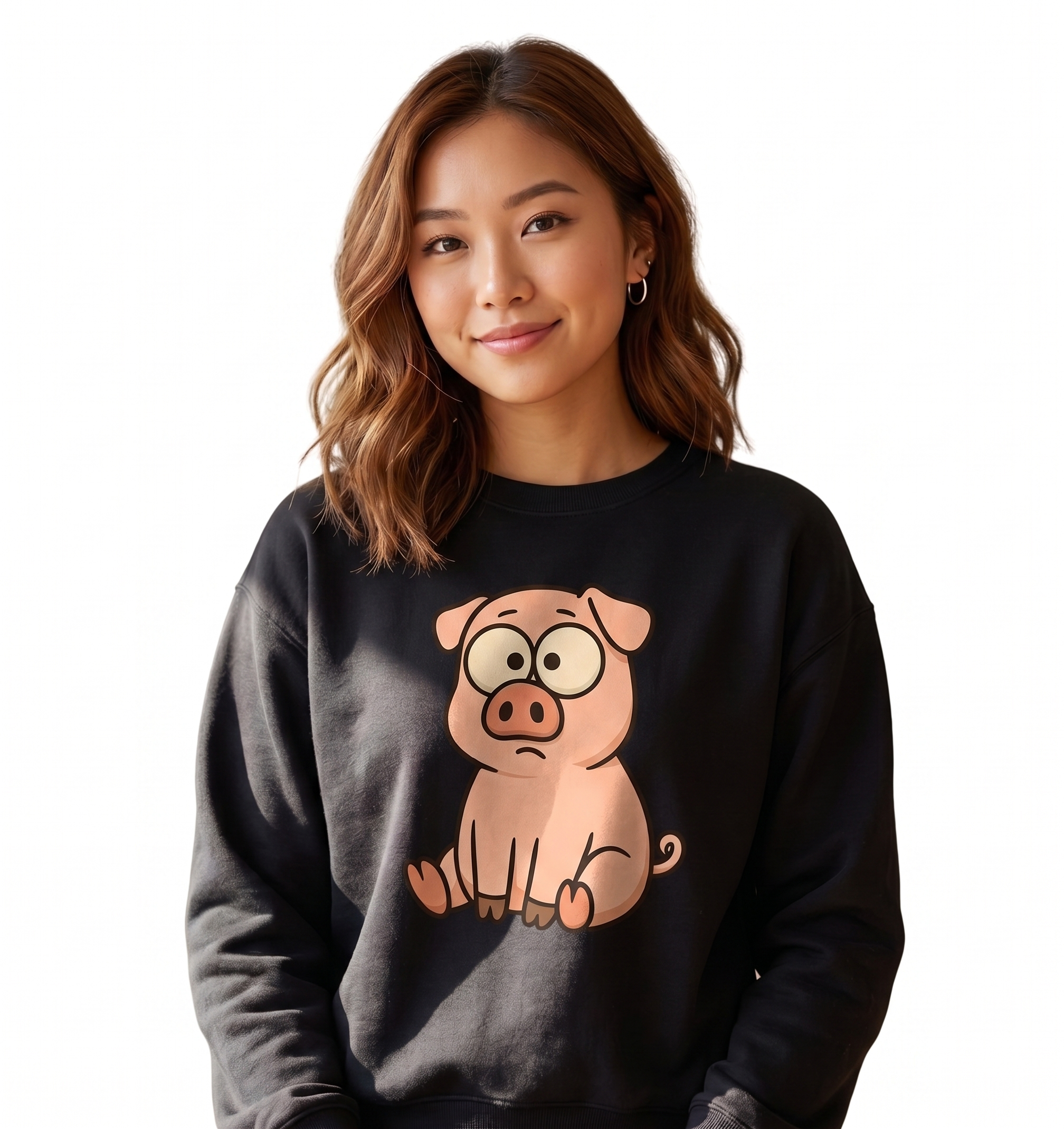 Add a dose of pure cuteness to your everyday look with our Wide-Eyed Piggy Graphic Sweatshirt. Featuring an irresistibly adorable, wide-eyed cartoon piglet, this pullover is designed for those who love whimsical art and maximum comfort. Whether you’re lounging at home, heading to a casual meetup, or looking for the perfect gift for a pig lover, this sweatshirt brings a smile to everyone’s face.