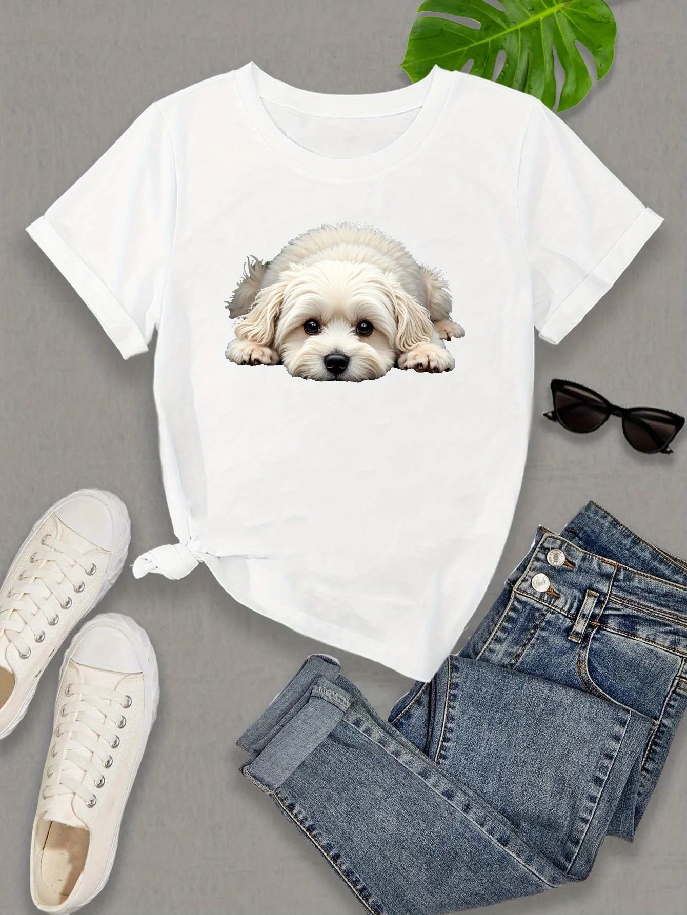 Women’s Maltese Puppy Graphic Tee – Vibrant Green Casual T-Shirt